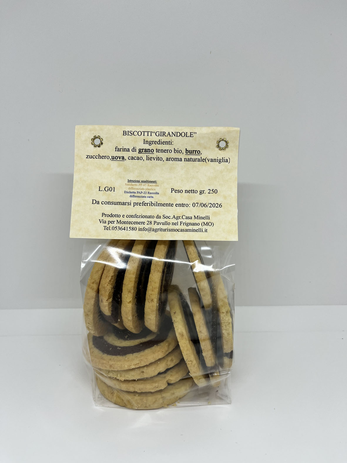 I biscotti girandole di Casa Minelli sono privi di coloranti ed additivi chimici e contengono esclusivamente aromi di origine naturale.