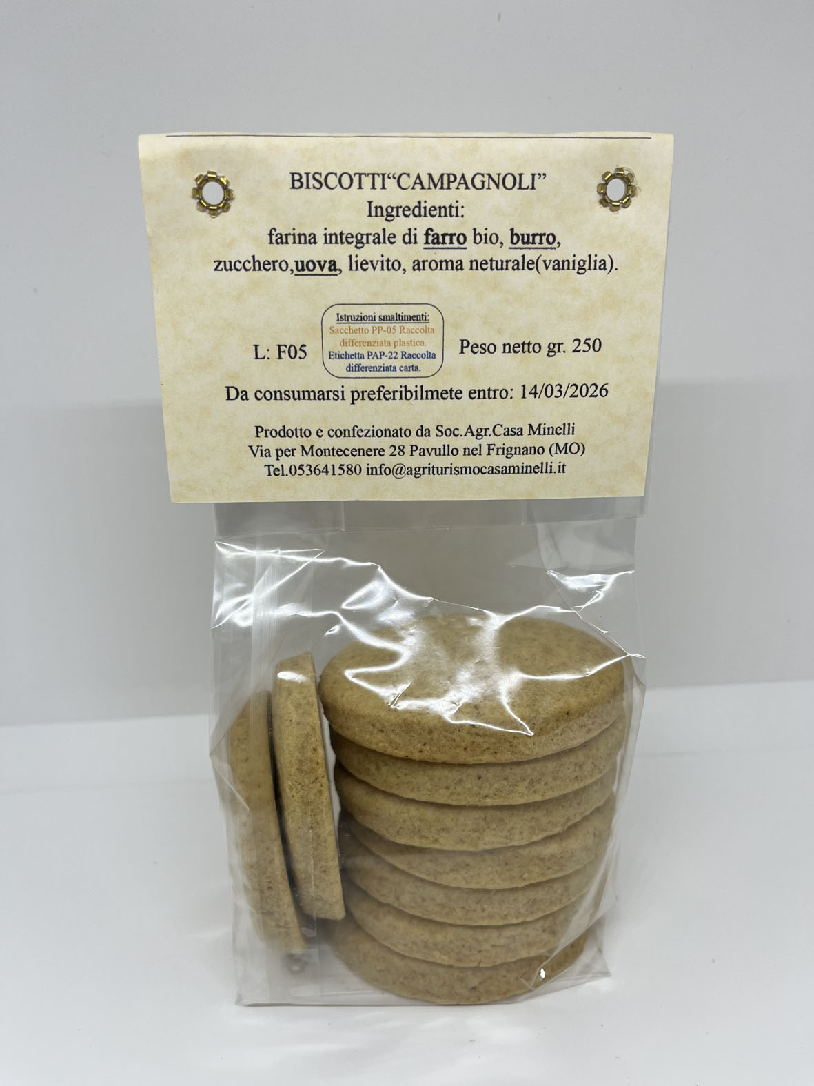 I biscotti di farro di Casa Minelli sono privi di coloranti ed additivi chimici e contengono esclusivamente aromi di origine naturale.